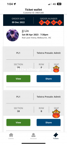 JJ林俊杰墨尔本演唱会超前排票转卖
